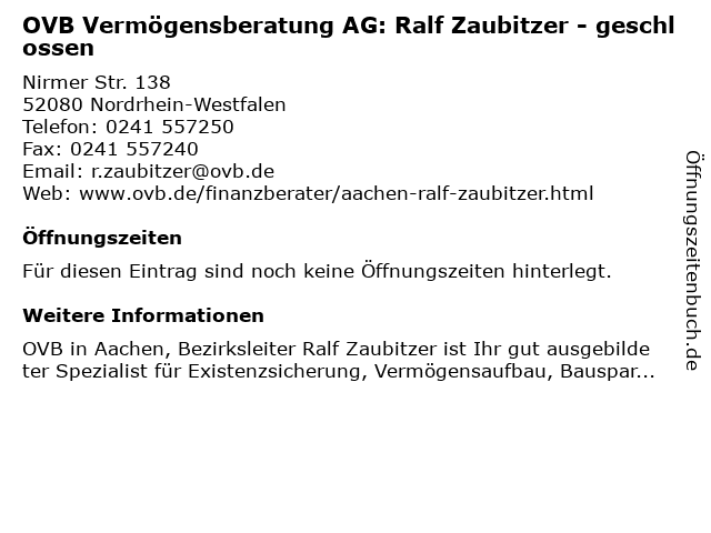| OVB Vermögensberatung AG: Ralf Zaubitzer - geschlossen anrufen | |