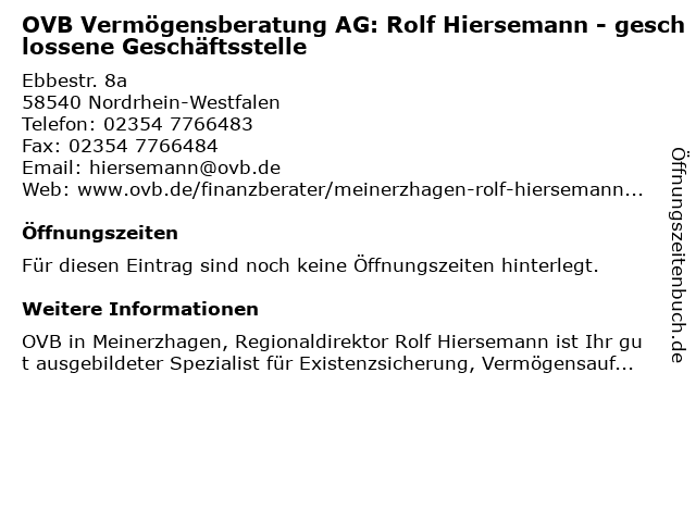 | OVB Vermögensberatung AG: Rolf Hiersemann - geschlossene Geschäftsstelle anrufen | |