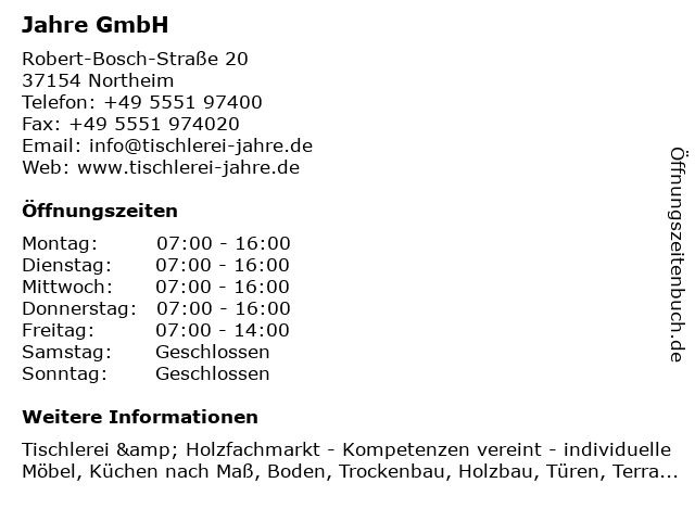 | Öffnungszeiten Jahre GmbH in Northeim anzeigen | |