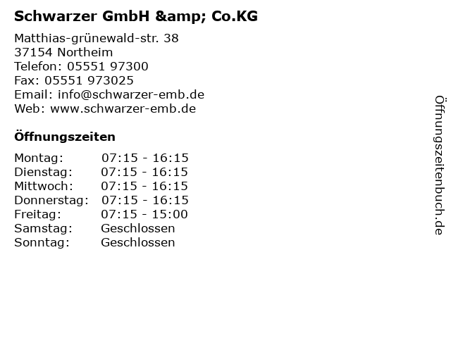 | Öffnungszeiten Schwarzer GmbH & Co.KG in Northeim anzeigen | |