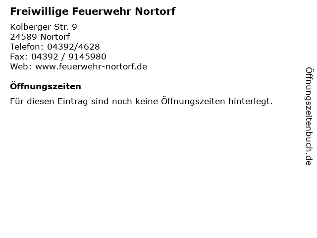 | Öffnungszeiten Freiwillige Feuerwehr Nortorf in Nortorf anzeigen | |