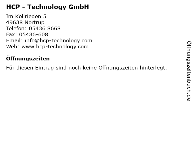 | Öffnungszeiten HCP - Technology GmbH in Nortrup anzeigen | |