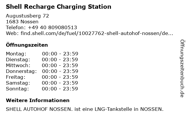 Öffnungszeiten Shell Recharge Charging Station