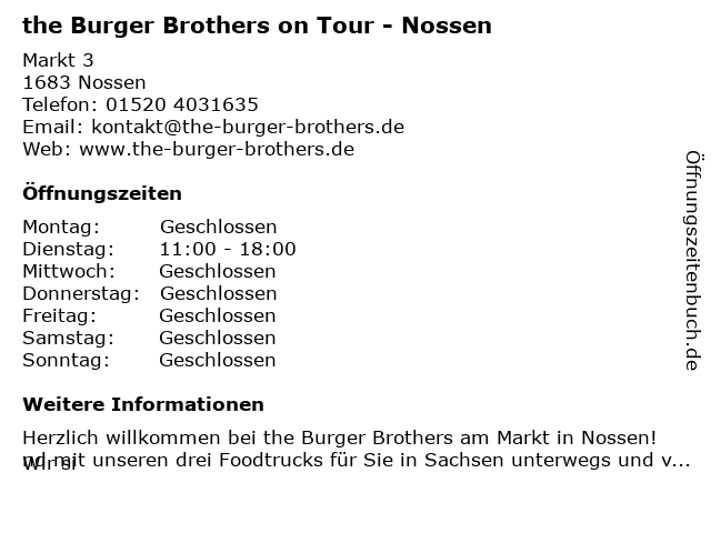 Branchen & Suchbegriffe zu the Burger Brothers on Tour - Nossen:brothers, burger, nossen, on, the, tour |