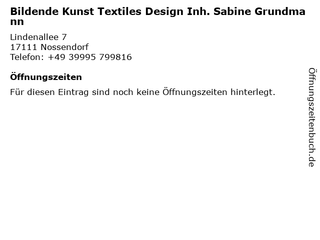 | Bildende Kunst Textiles Design Inh. Sabine Grundmann anrufen | |