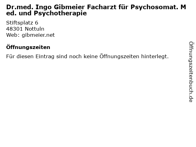 Branchen & Suchbegriffe zu Dr.med. Ingo Gibmeier Facharzt für Psychosomat. Med. und Psychotherapie:anästhesist, dr.med., facharzt, gibmeier, ingo, med., psychosomat., psychotherapie |