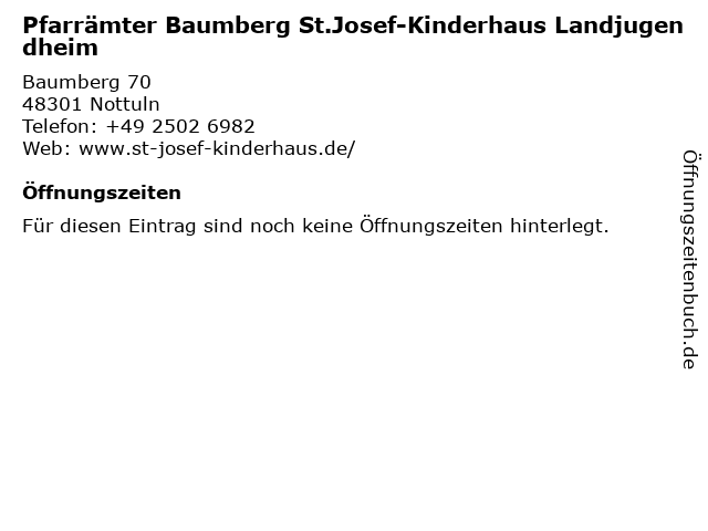 | Pfarrämter Baumberg St.Josef-Kinderhaus Landjugendheim anrufen | |
