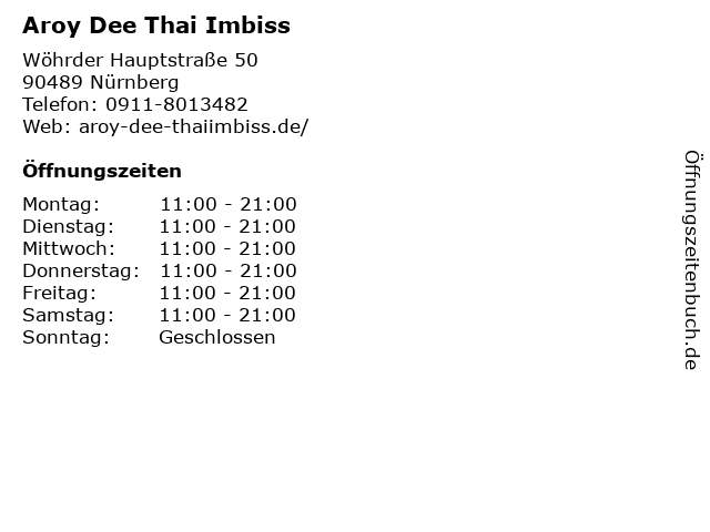 Öffnungszeiten Aroy Dee Thai Imbiss in Nürnberg anzeigen | |