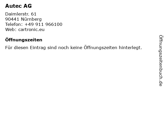 | Öffnungszeiten Autec AG in Nürnberg anzeigen | |