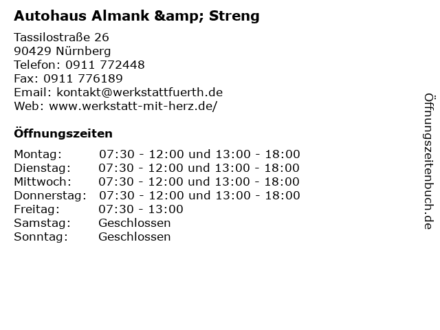 | Öffnungszeiten Autohaus Almank & Streng in Nürnberg anzeigen | |