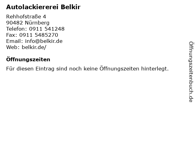| Öffnungszeiten Autolackiererei Belkir in Nürnberg anzeigen | |