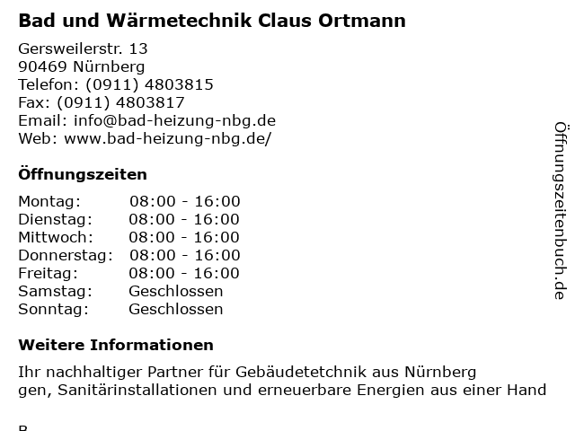 1 Meister Kobras Bad und mehr Sanitärinstallation (Entfernung: 2,91 km) An der Steinmauer 8 A, 90455 Nürnberg 2 Wolfferts Haus- und Wärmetechnik GmbH WHW-Regionalbüro Nürnberg (Entfernung: 3,24 km) Duisburger Str. 130, 90451 Nürnberg 3 6 |