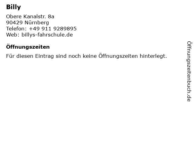 | Öffnungszeiten Billy in Nürnberg anzeigen | |
