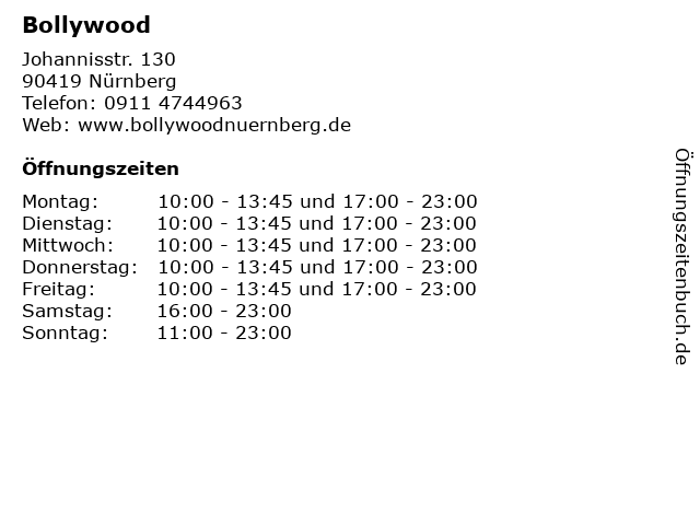 | Öffnungszeiten Bollywood in Nürnberg anzeigen | |