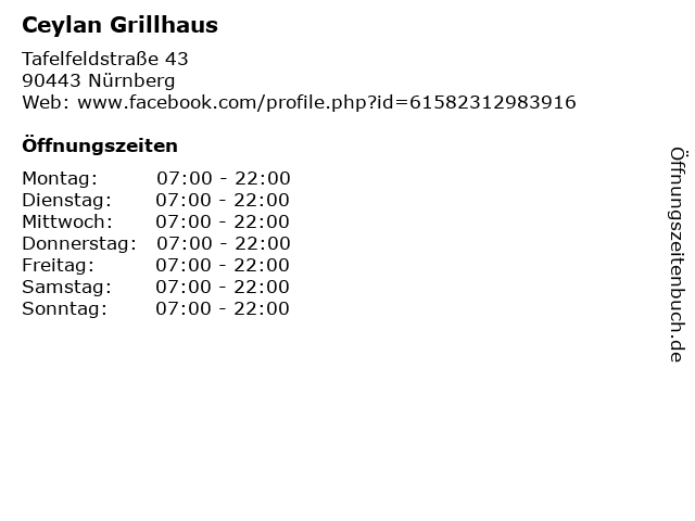 | Öffnungszeiten Ceylan Grillhaus in Nürnberg anzeigen | |
