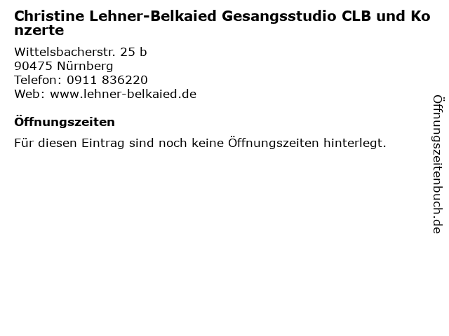 | Christine Lehner-Belkaied Gesangsstudio CLB und Konzerte anrufen | |