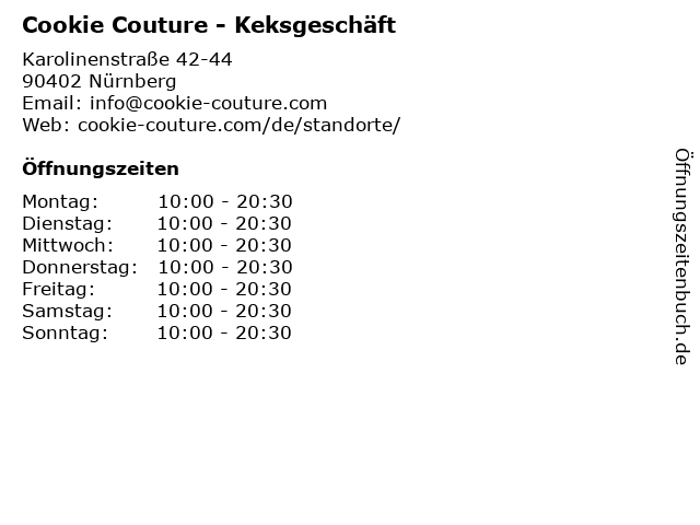 | Öffnungszeiten Cookie Couture - Keksgeschäft in Nürnberg anzeigen | |