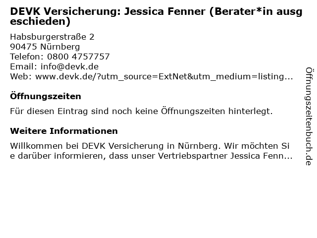 | DEVK Versicherung: Jessica Fenner (Berater*in ausgeschieden) anrufen | |