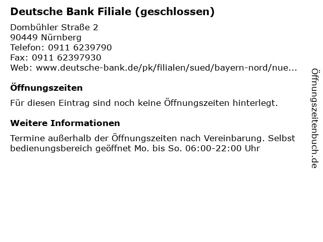 | Deutsche Bank Filiale (geschlossen) anrufen | |