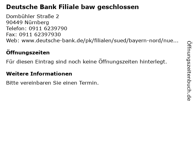 | Deutsche Bank Filiale baw geschlossen anrufen | |