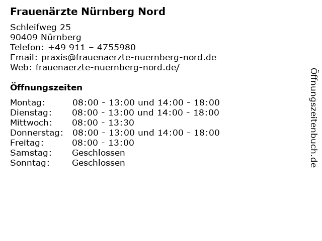 | Öffnungszeiten Frauenärzte Nürnberg Nord in Nürnberg anzeigen | |