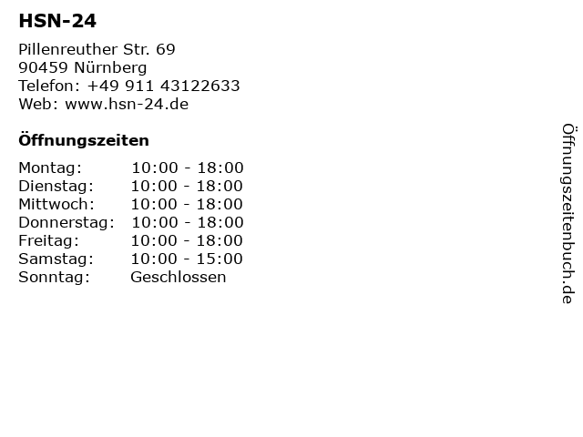 | Öffnungszeiten HSN-24 in Nürnberg anzeigen | |