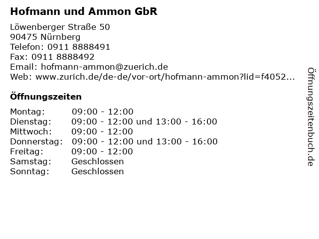 | Öffnungszeiten Hofmann und Ammon GbR in Nürnberg anzeigen | |