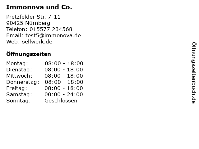 | Öffnungszeiten Immonova und Co. in Nürnberg anzeigen | |