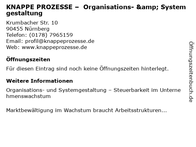 | KNAPPE PROZESSE – Organisations- & Systemgestaltung anrufen | |