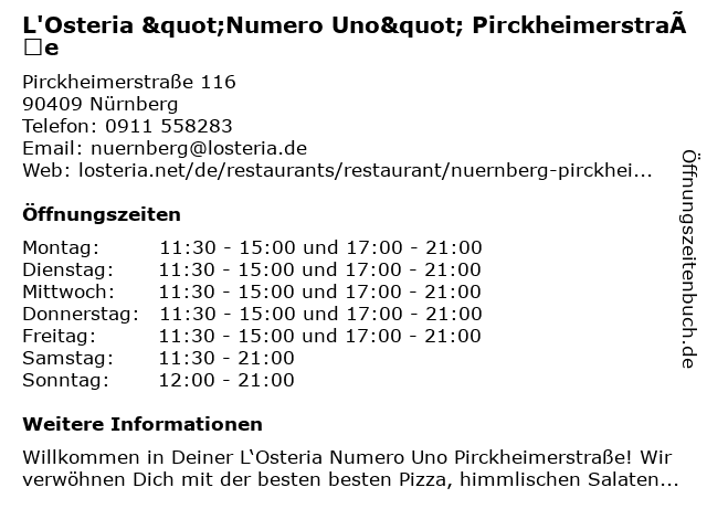 Branchen & Suchbegriffe zu L'Osteria "Numero Uno" Pirckheimerstraße:"numero, l'osteria, pirckheimerstraße, pizzeria, uno" |