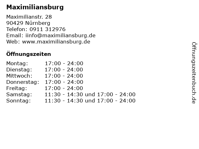 | Öffnungszeiten Maximiliansburg in Nürnberg anzeigen | |
