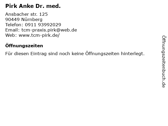 | Adresse Pirk Anke Dr. med. in Nürnberg anzeigen |