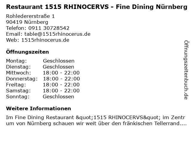 Branchen & Suchbegriffe zu Restaurant 1515 RHINOCERVS - Fine Dining Nürnberg:1515, dining, fine, restaurant, rhinocervs |