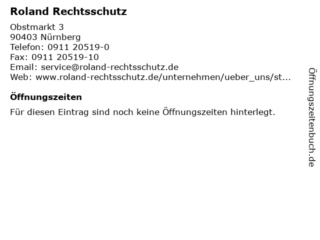 | Öffnungszeiten Roland Rechtsschutz in Nürnberg anzeigen | |