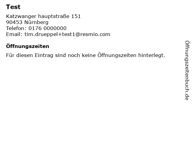 | Öffnungszeiten Test in Nürnberg anzeigen | |