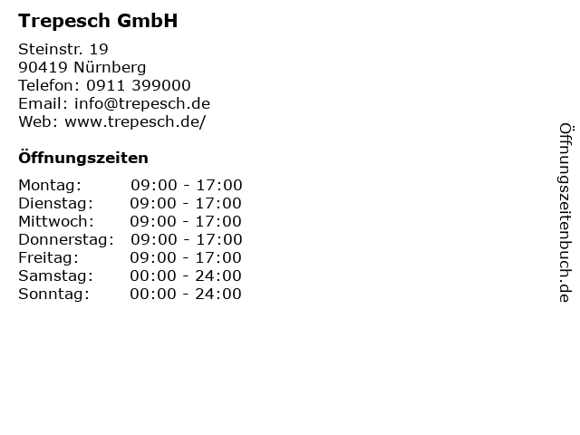 Öffnungszeiten Trepesch GmbH in Nürnberg anzeigen | |