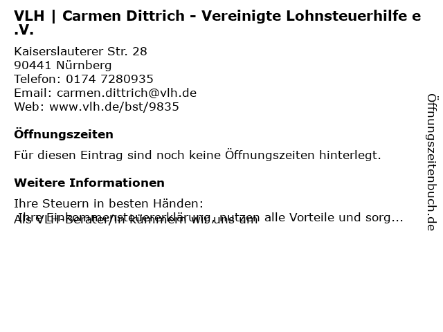 | VLH | Carmen Dittrich - Vereinigte Lohnsteuerhilfe e.V. anrufen | |