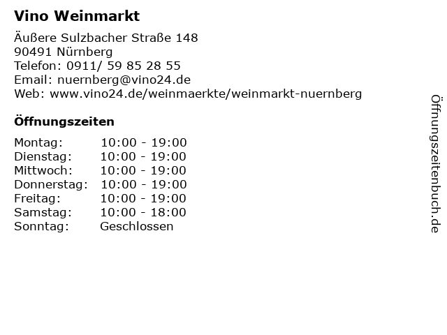 | Öffnungszeiten Vino Weinmarkt in Nürnberg anzeigen | |
