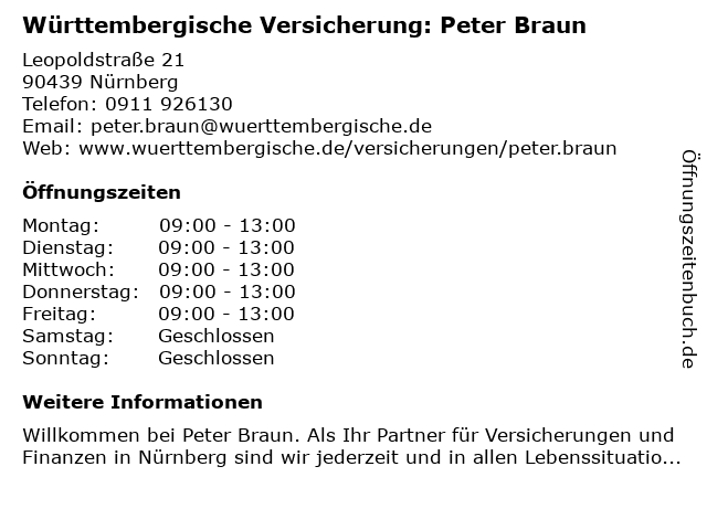 Branchen & Suchbegriffe zu Württembergische Versicherung: Peter Braun:braun, peter, versicherung, württembergische |