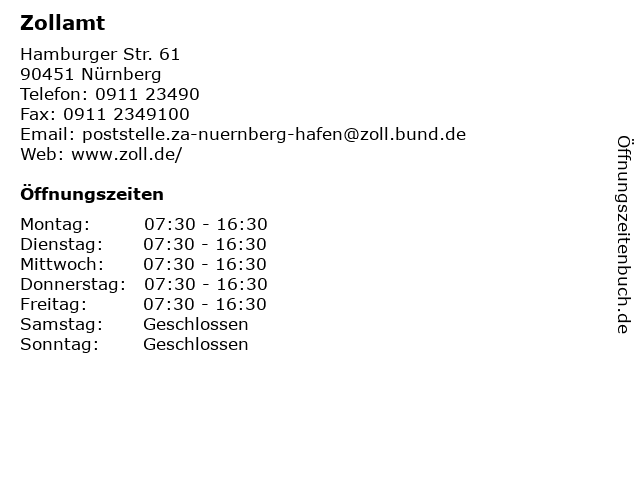 | Öffnungszeiten Zollamt in Nürnberg anzeigen | |