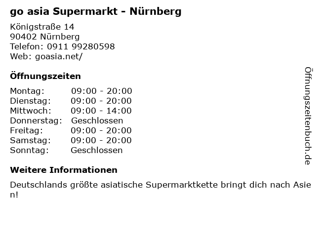 Branchen & Suchbegriffe zu go asia Supermarkt - Nürnberg:asia, go, supermarkt, supermärkte |