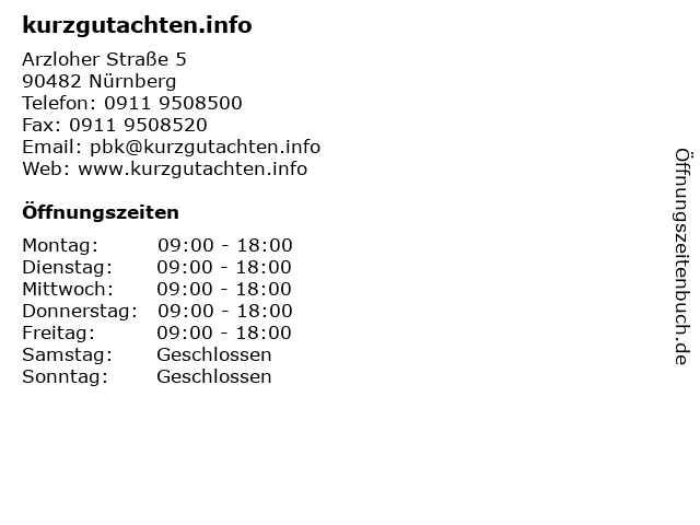 | Öffnungszeiten kurzgutachten.info in Nürnberg anzeigen | |
