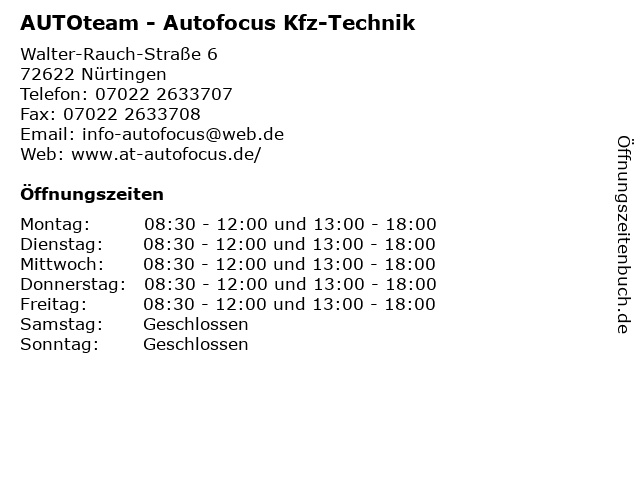 Branchen & Suchbegriffe zu AUTOteam - Autofocus Kfz-Technik:abgasuntersuchung, autofocus, autoteam, bremsenservice, fehlerdiagnose, hauptuntersuchung, inspektion, instandsetzung, kfz, reifenservice, reparatur, technik, tüv, wartung, ölwechsel |