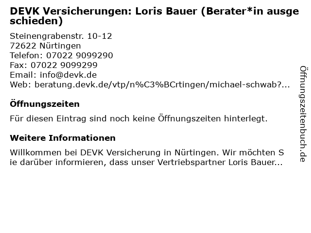 | DEVK Versicherungen: Loris Bauer (Berater*in ausgeschieden) anrufen | |