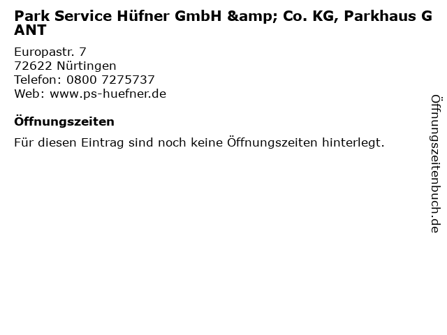 | Park Service Hüfner GmbH & Co. KG, Parkhaus GANT anrufen | |
