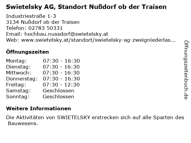 Branchen & Suchbegriffe zu Swietelsky AG, Standort Nußdorf ob der Traisen:nußdorf, ob, standort, swietelsky, traisen |