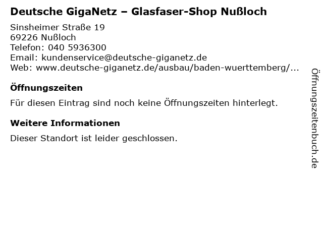 | Deutsche GigaNetz – Glasfaser-Shop Nußloch anrufen | |