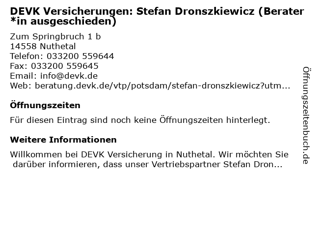 | DEVK Versicherungen: Stefan Dronszkiewicz (Berater*in ausgeschieden) anrufen | |