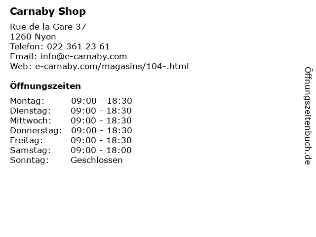 | Öffnungszeiten Carnaby Shop in Nyon anzeigen | |