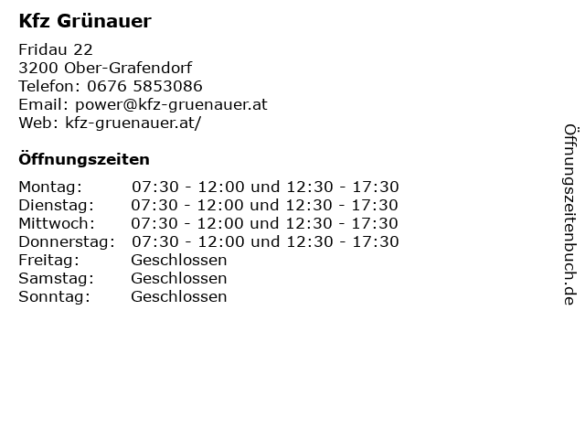 | Öffnungszeiten Kfz Grünauer in Ober-Grafendorf anzeigen | |